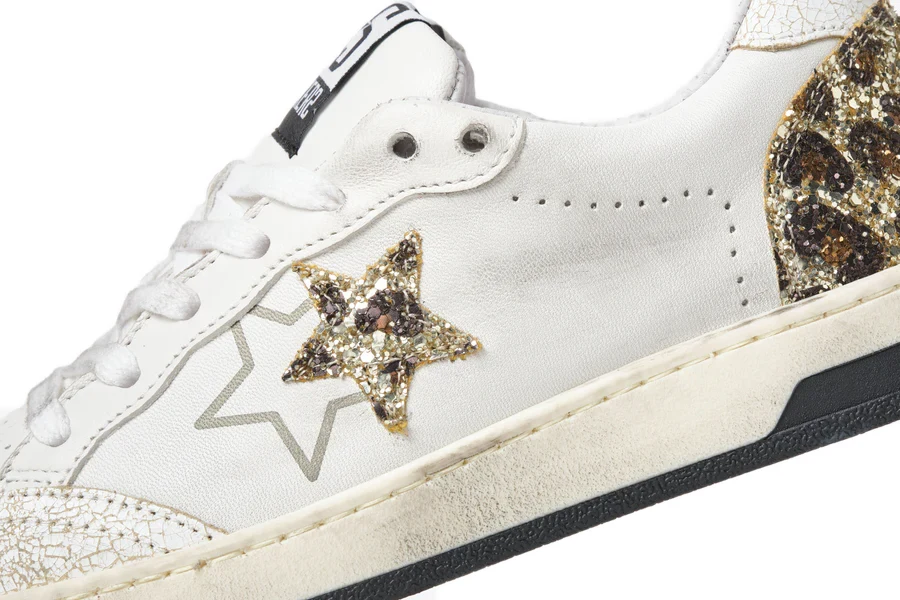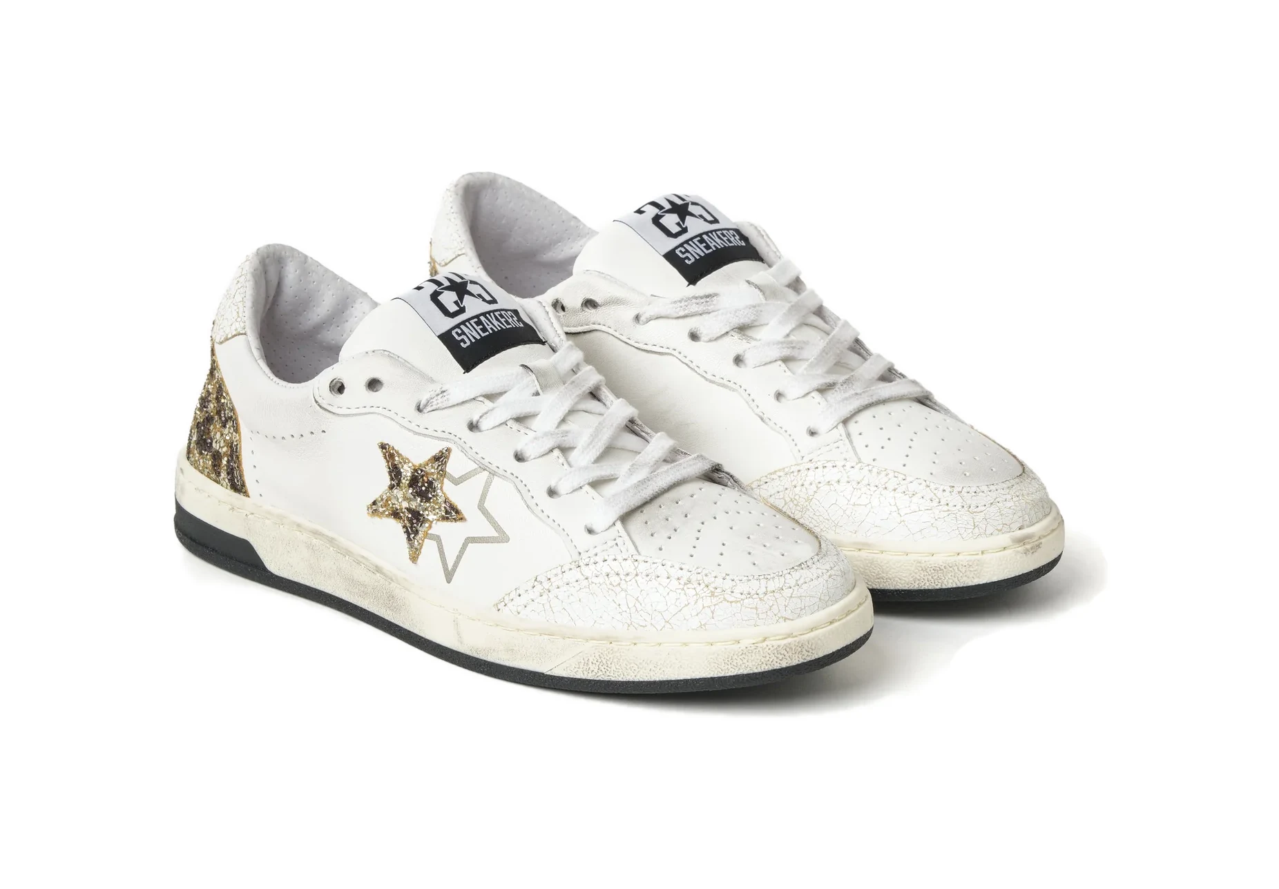 SNEAKER WEEK STAR IN PELLE BIANCA CON DETTAGLI GLITTER LEOPARDATI ED EFFETTO USED