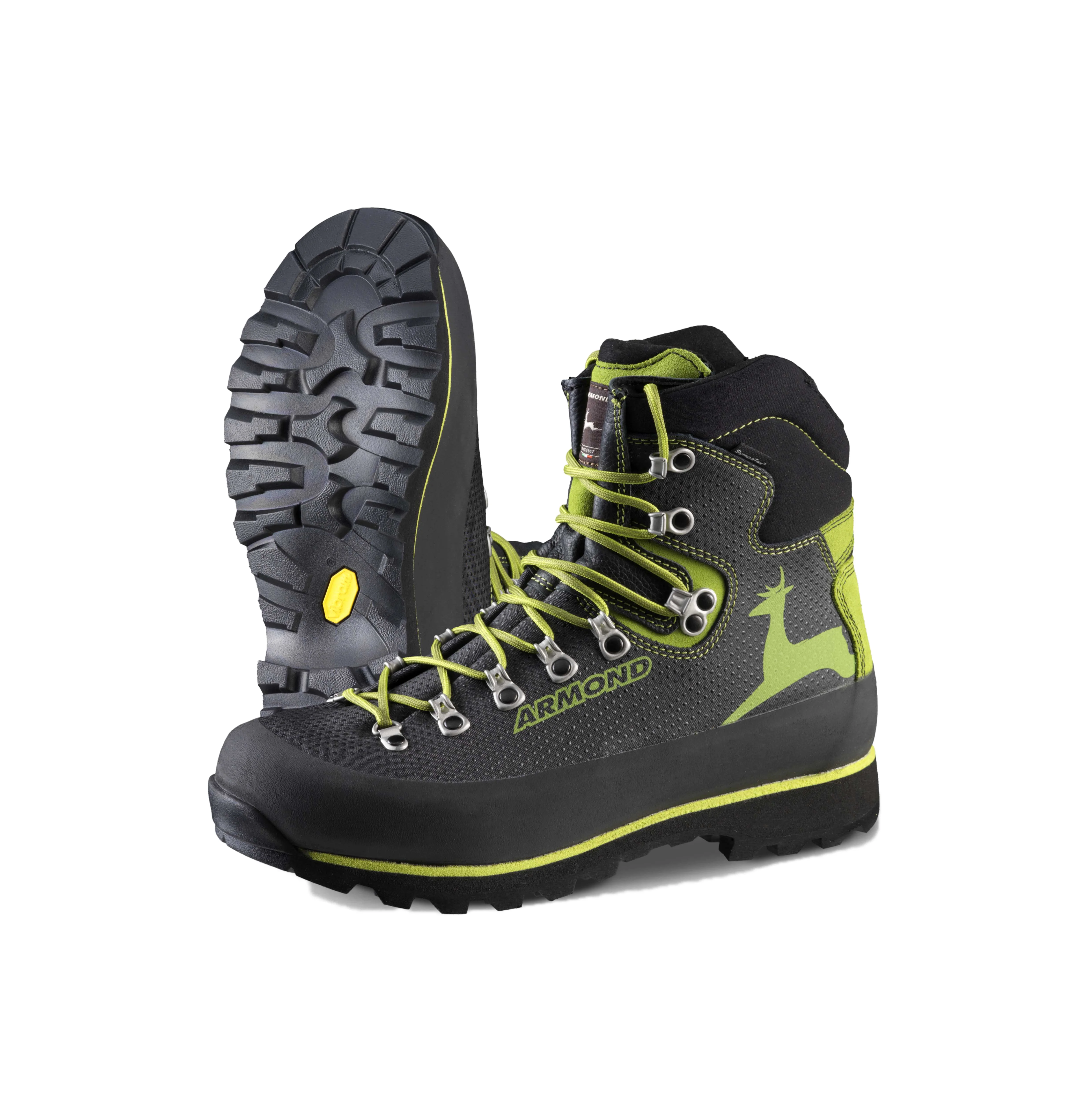 Bordo in gomma protettivo e suola Vibram con inserto in microporosa leggera.