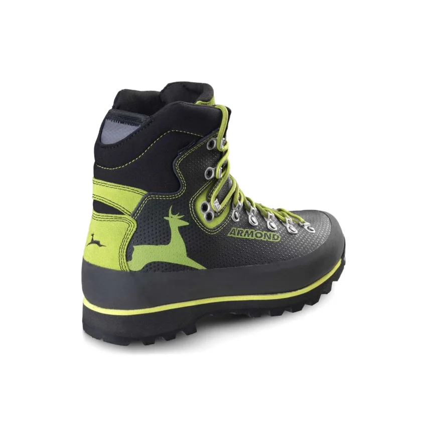 Scarpone multiuso superleggero, costruito con una tomaia a taglio intero in materiale Spin ad alte prestazioni di resistenza all’abrasione.