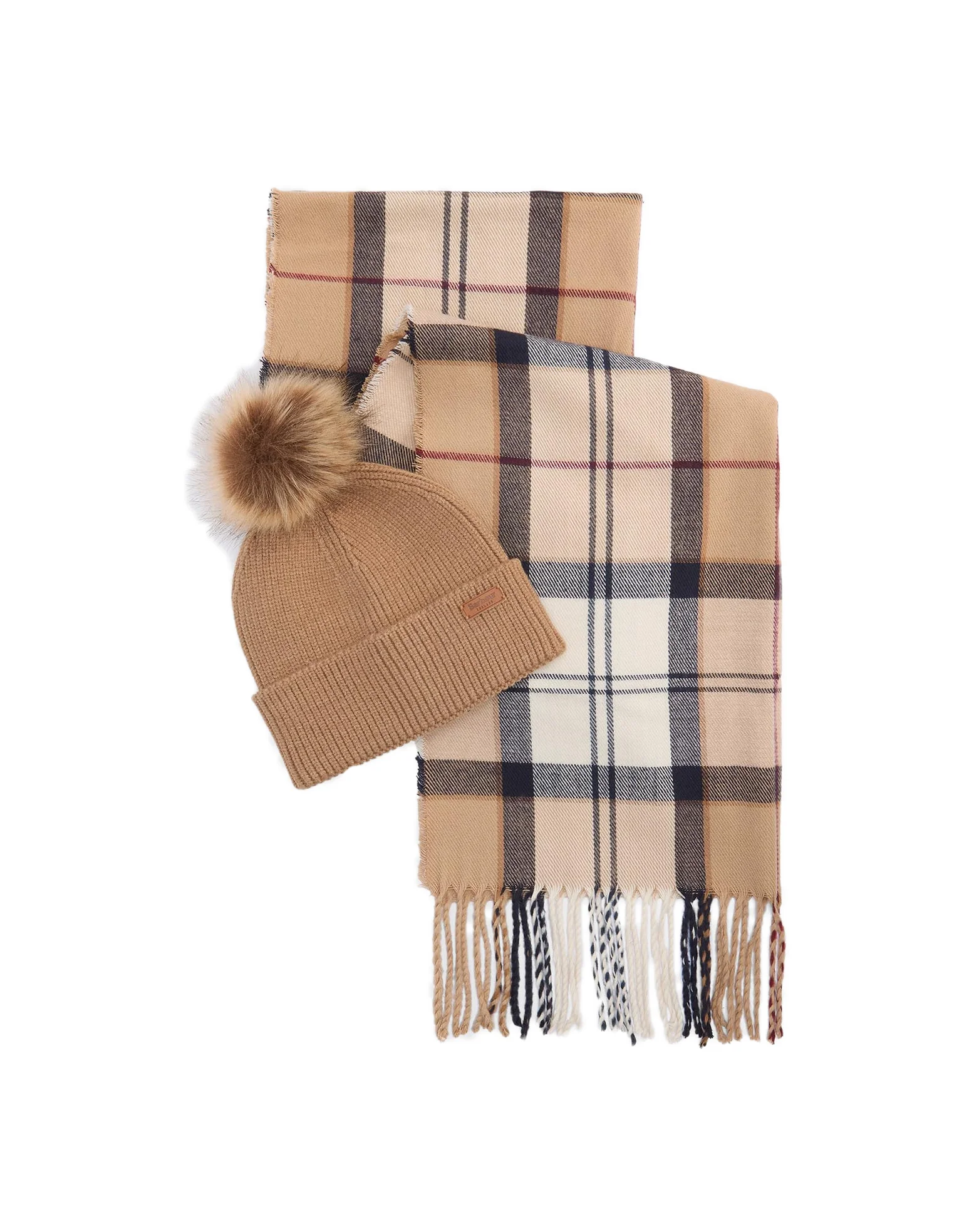Il set regalo Barbour Dover Beanie & Hailes Scarf presenta un pon pon di pelliccia sintetica e una sciarpa tartan con nappe. Presentato in una scatola regalo, questo set è un regalo ideale per Natale o per un compleanno.