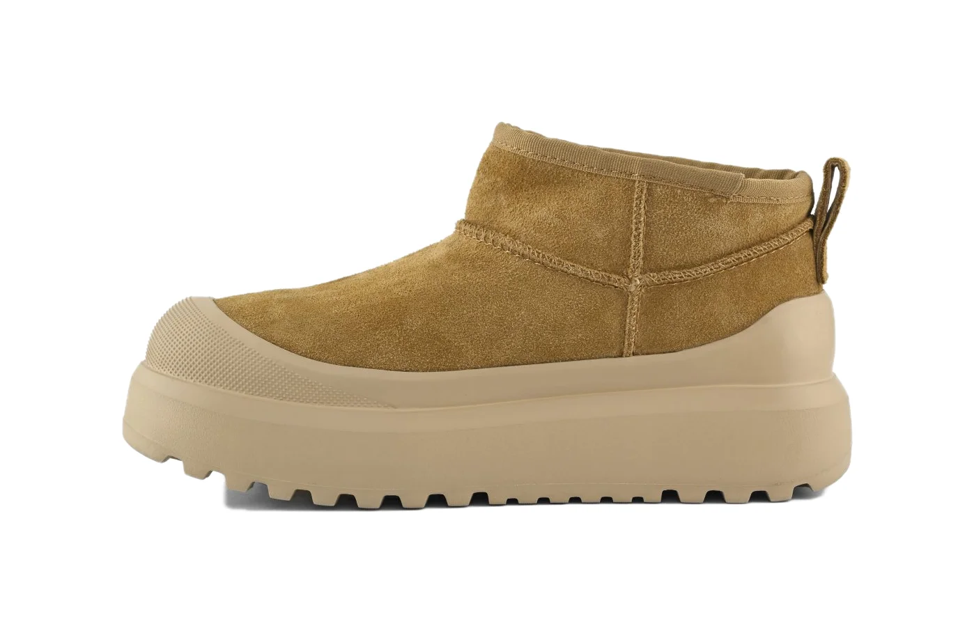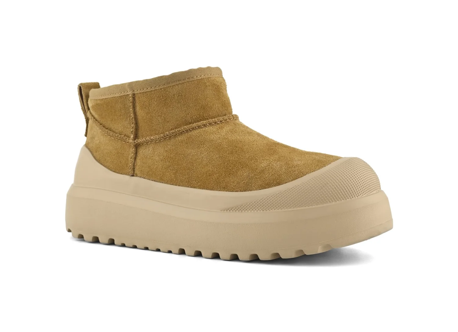 Questo stivaletto in pelle scamosciata ha una suola monoblocco ultraleggera con colore a contrasto, che dona al passo comfort e stabilità. Caldo e dalla forma semplice e armoniosa, si abbinerà perfettamente a pantaloni over, salopette o ampie gonne abbinati a maglioni gamer-style. A completare il look maxi shearling e accessori in lana tricot.
