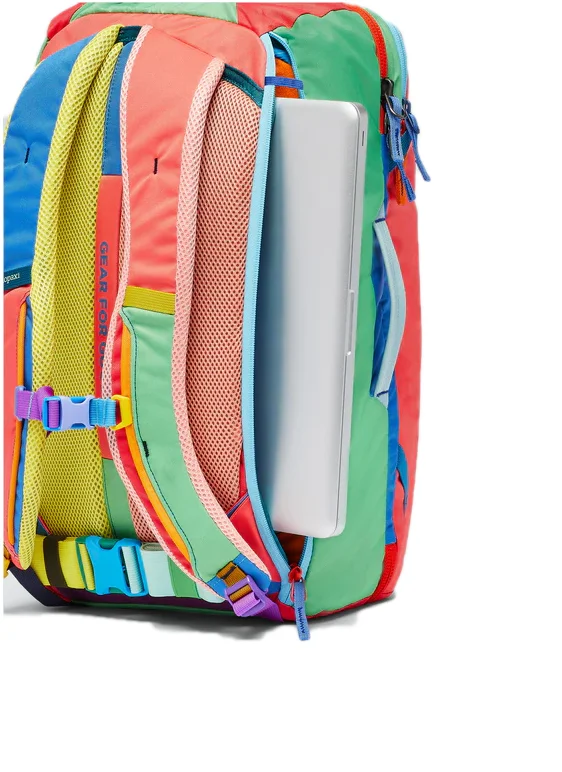 Identico al nostro zaino da viaggio Allpa 28L standard per caratteristiche e funzioni, questa versione Del Día utilizza tessuto deadstock di alta qualità che altrimenti sarebbe finito in discarica, rendendo ogni zaino unico nel suo genere.