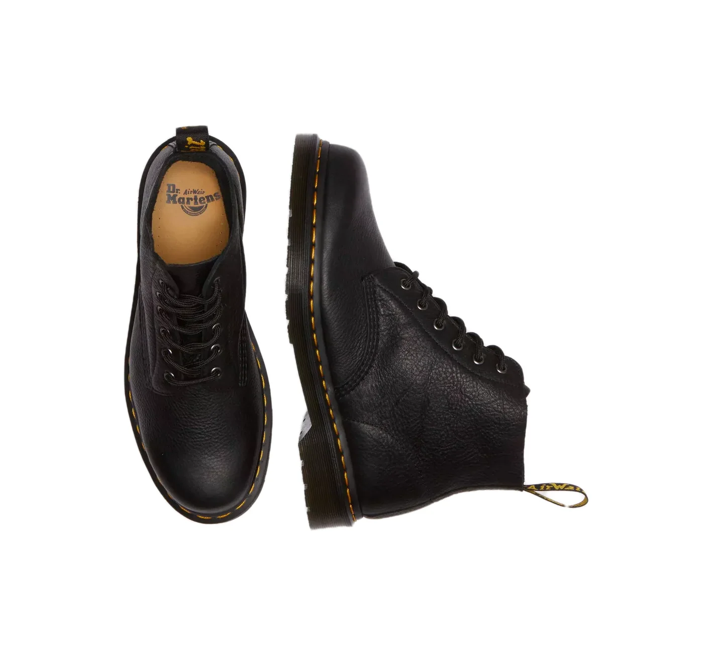 Ci siamo ammorbiditi. Abbiamo rivoluzionato il nostro stivale con lacci 101 a sei occhielli utilizzando la lussuona Ambassador: una pelle morbida dall'aspetto testurizzato e martellato. La sua morbidezza rende il modello Dr. Martens Original ancora più facile da indossare. La suola presenta le classiche rifiniture gialle DM's e il nostro caratteristico motivo scanalato. Sul tallone, troverai sempre l'inconfondibile linguetta gialla e nera AirWair.