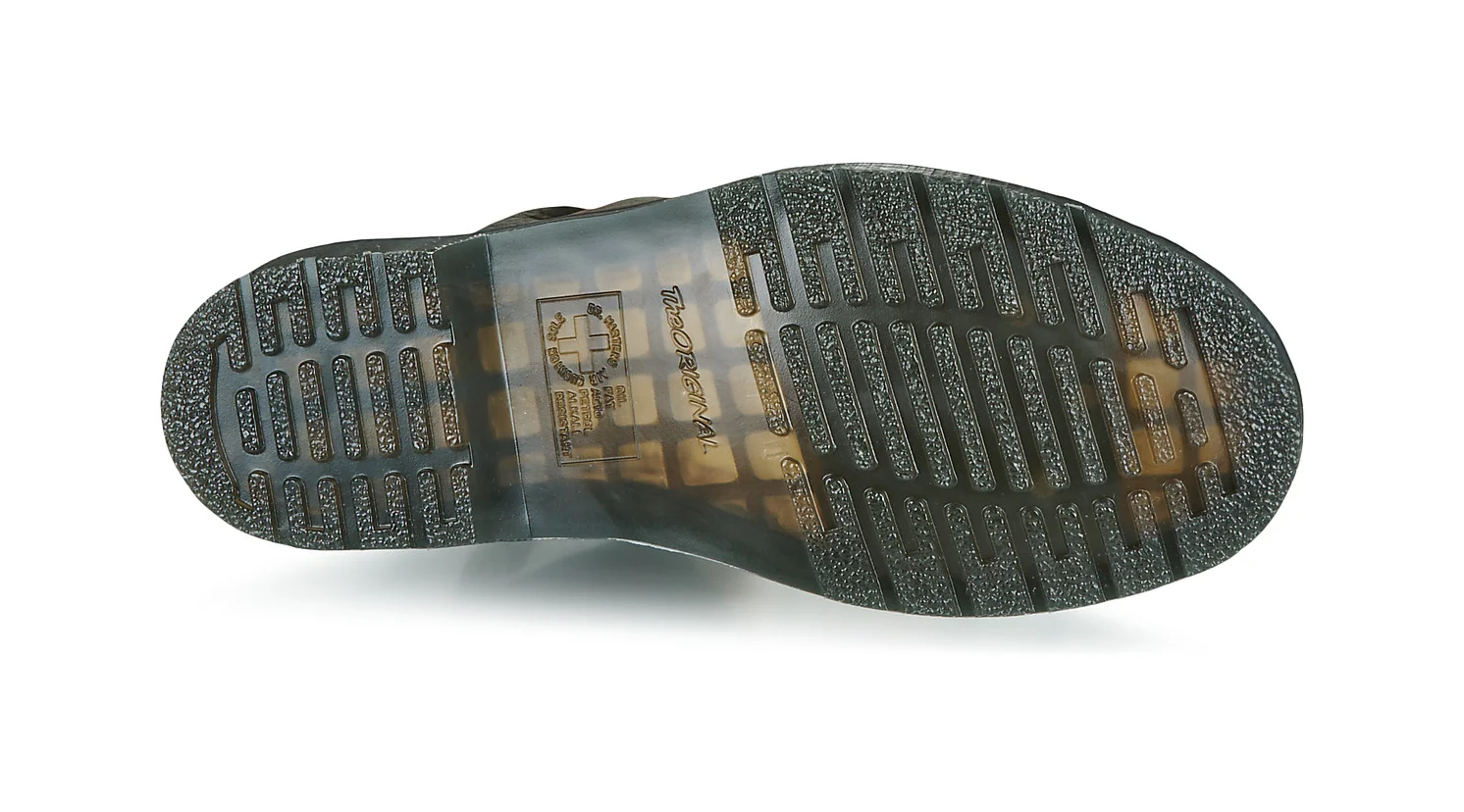 La suola DM's è un pilastro della costruzione Dr. Martens, famosa per il suo comfort e stabilità. Un aspetto bicolore con scanalature distintive e un inconfondibile disegno del battistrada.