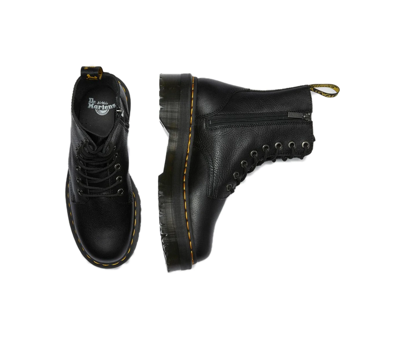 Evoluzione a tutto volume della nostra silhouette Original, Jadon è tornato ed è più rumoroso che mai. Montato su una suola di 4.7 cm, questo imponente stivale è stato reimmaginato in Pisa, una morbida pelle fresata di peso medio, dalla grana fine e una finitura cerosa. Questi stivali platform sono rifiniti con una fettuccia posteriore nera e gialla e le nostre inconfondibili cuciture gialle.