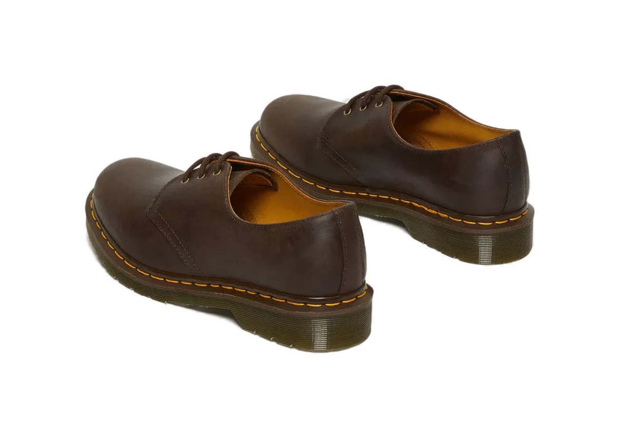 Realizzata in Crazy Horse, una pelle robusta dalla finitura cerosa, la scarpa 1461 ha lo stesso DNA della sua controparte a 8 occhielli: bordi scanalati, cuciture gialle e la nostra iconica suola con cuscinetto d'aria. E soprattutto, la suola è fissata con uno dei più pregiati sistemi di rinforzo a disposizione: il guardolo Goodyear.