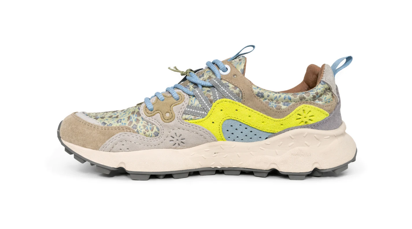 YAMANO 3 WMN Sneakers in suede nylon leo cream white yellow fluo