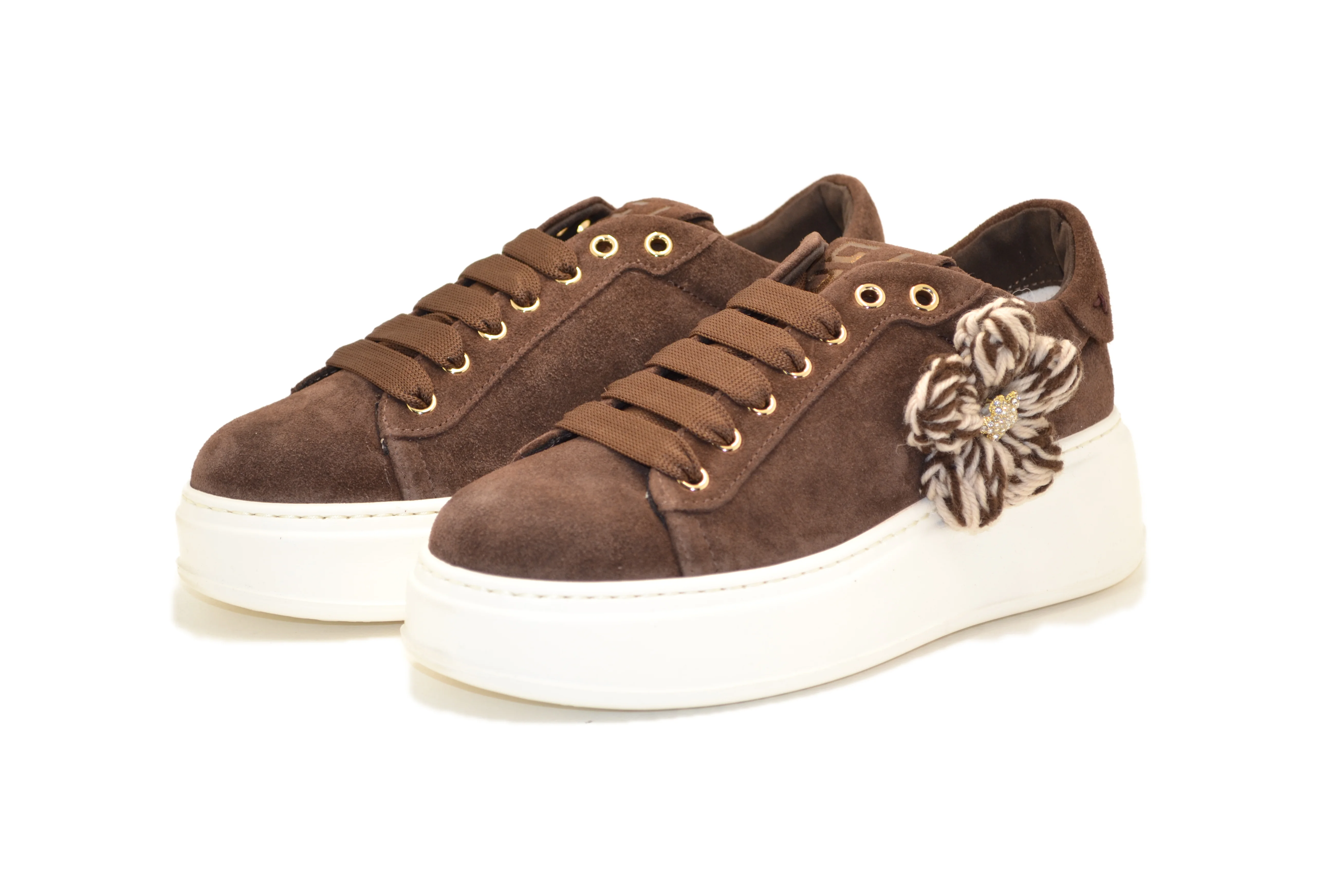 GIO PIU SNEAKER COMBI FLOWERS CIOCOLAT