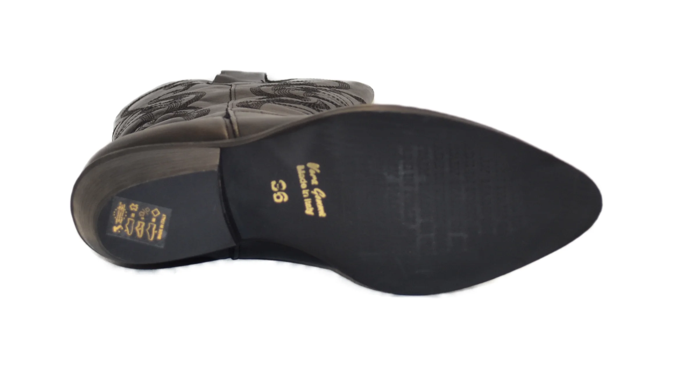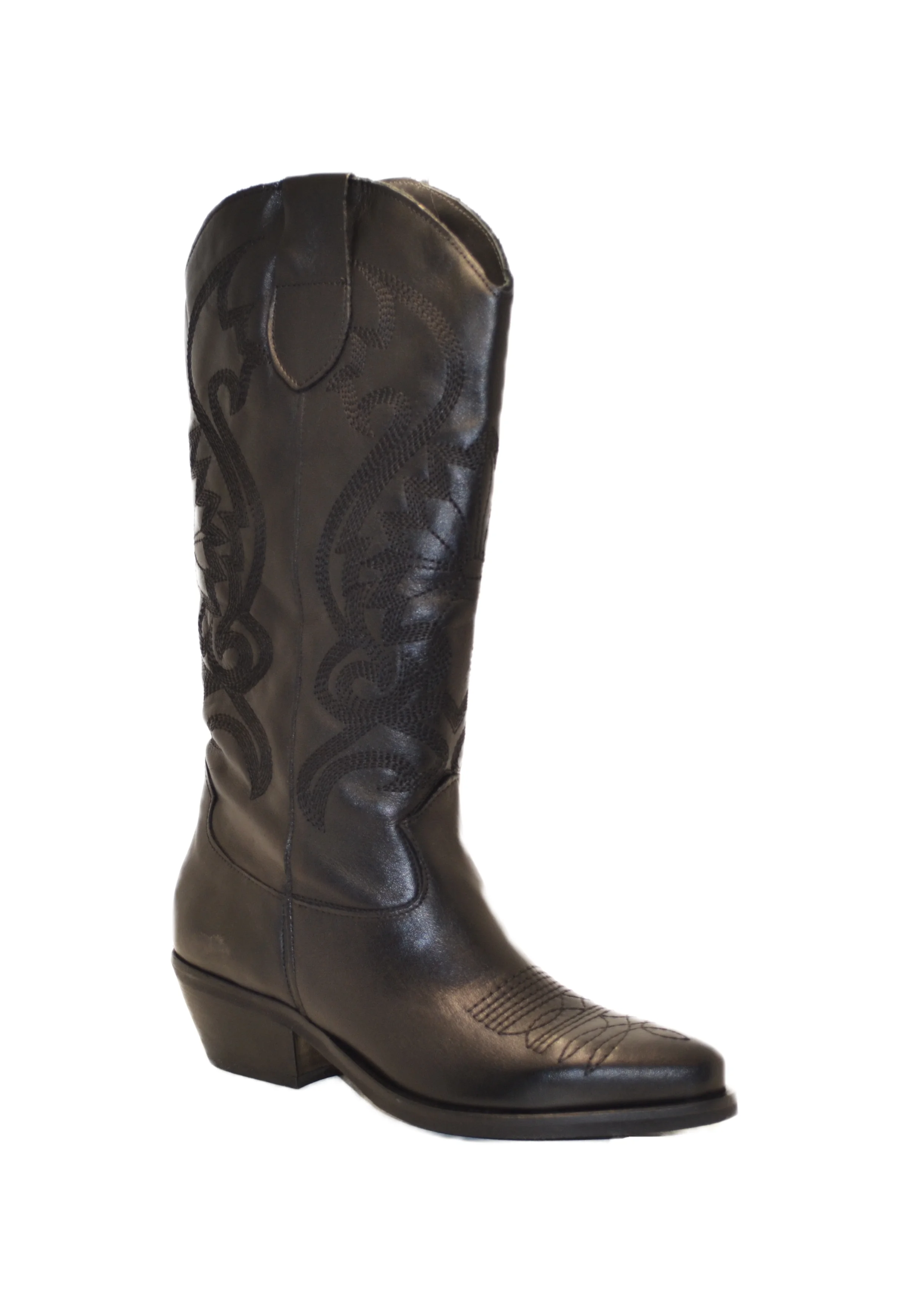 STIVALE TEXANO IN PELLE CON RICAMO IN TINTA ALTO VITELLO NERO