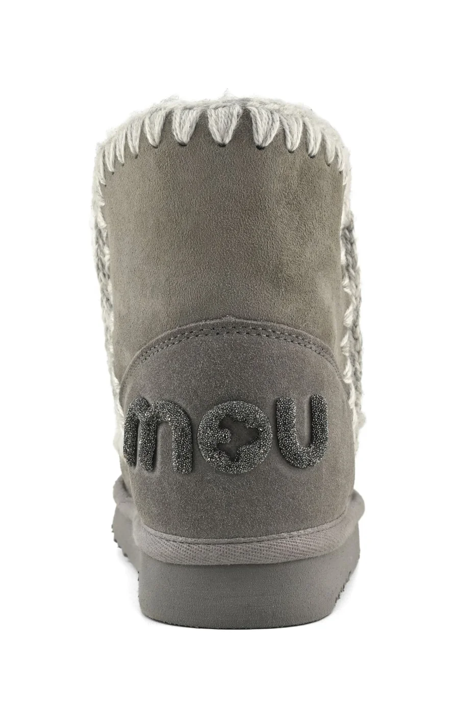 Il modello di eskimo 18 con logo glitterato è perfetto per aggiungere un tocco di luce al tuo look, valorizzato dalle iconiche cuciture in lana all'uncinetto firmate mou.
