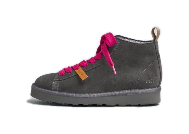 Polacchini donna P001 con tomaia di camoscio , lacci a trama larga e fodera interna di faux fur. La P001 con le sue linee pulite rappresenta il perfetto equilibrio fra design e comfort.