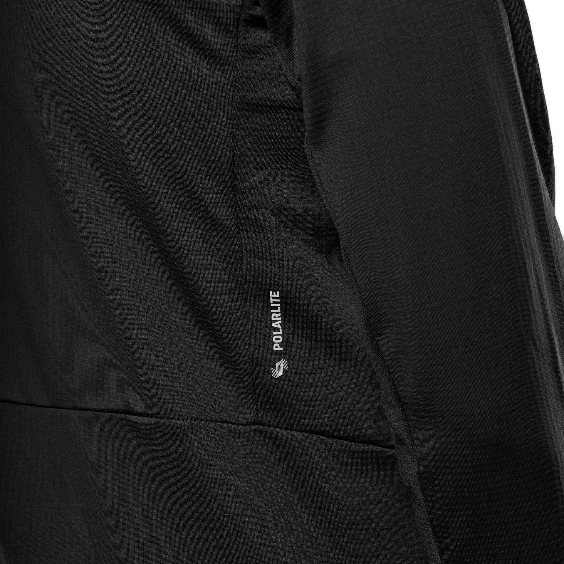 Progettato per massimizzare calore e traspirabilità, è composto da un tessuto in poliestere (95%) e elastan (5%) con un peso di 215 grammi. L'esterno ha un design pulito, mentre l'interno è dotato di una struttura a griglia che trattiene il calore e regola l'umidità, consentendo la traspirazione.