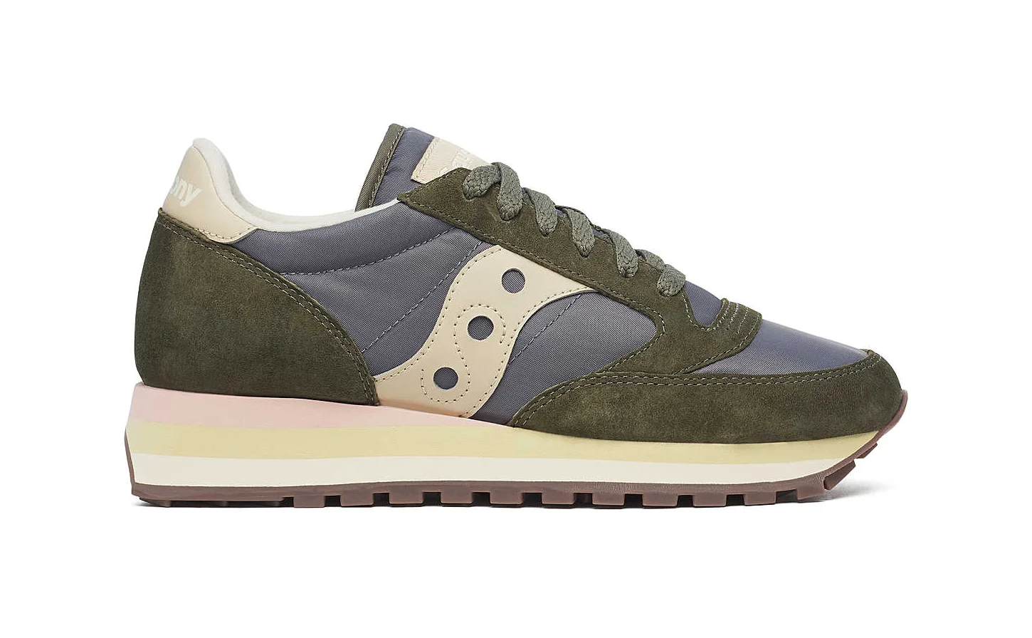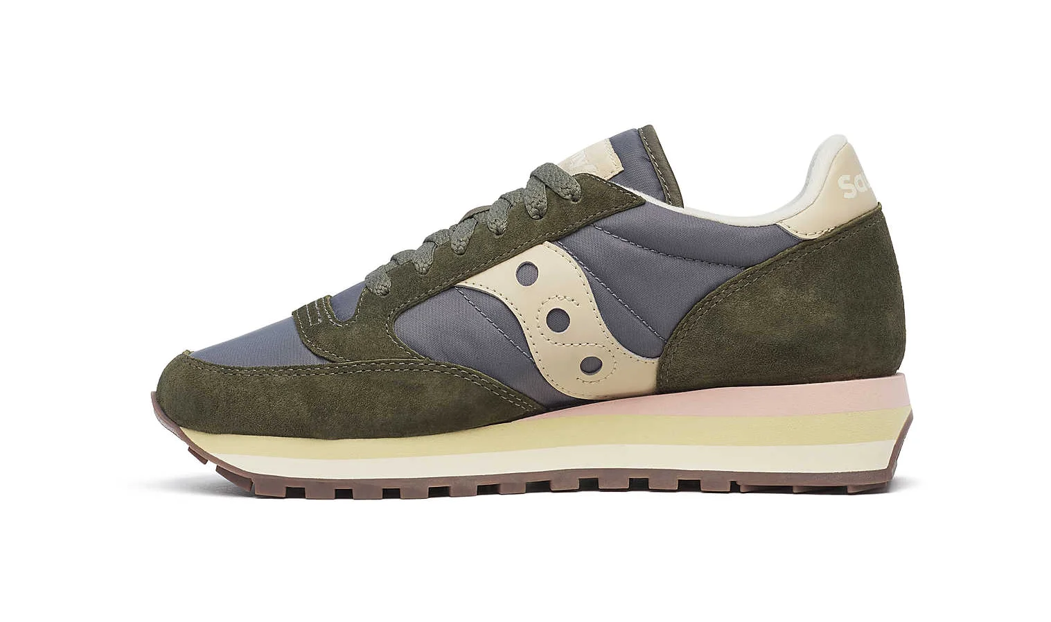 Jazz Triple è un'evoluzione del classico Jazz Original, popolare nel mercato femminile. L'intersuola è più alta rispetto a quella dell’iconica Jazz O’ ed offre una perfetta combinazione tra stabilità e ammortizzazione del piede. La suola in gomma garantisce un'ottima resistenza all'usura.