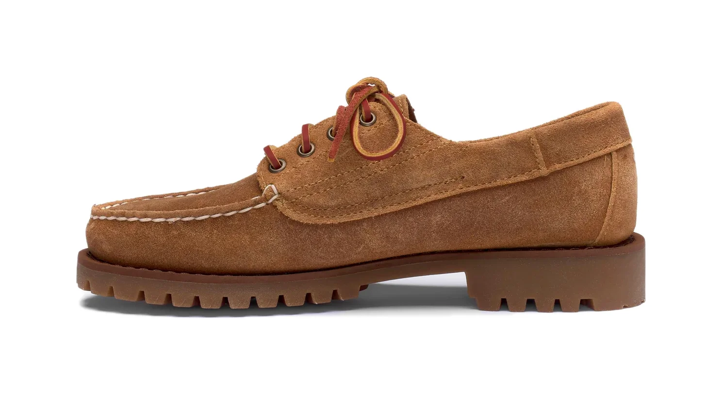 Realizzata con uno speciale tipo di pelle scamosciata trattata con olii e selezionata per la sua calda morbidezza al tocco e la compattezza della grana, questa resistente scarpa cucita mano è un classico che vi porterà ovunque. Suola carro armato in gomma chiara per massima trazione e aderenza. I moc "Askook" prendono il loro nome dalla parola "serpente" nella lingua dei nativi americani Algonquin, una orgogliosa tribù che viveva nei territori del Nord America a cui il serpente era sacro.
