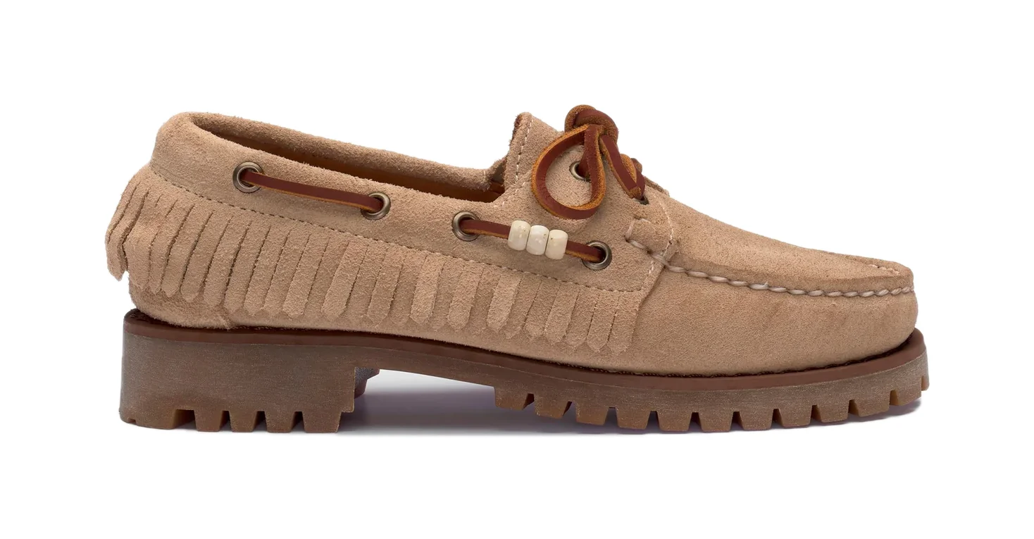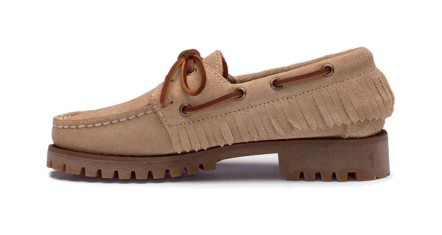 La storia Sebago legata alle attività outdoor e ai grandi spazi aperti si traduce nel nome e nella costruzione del modello Ranger Raw. Il design della classica scarpa da barca è reso più robusto dalla suola alta in gomma carrarmato che segue con sicurezza ogni movimento. Cucito a mano con la migliore lavorazione artigianale in comoda pelle scamosciata, è rifinito con perline sui lati e la frangia che decora il tallone.