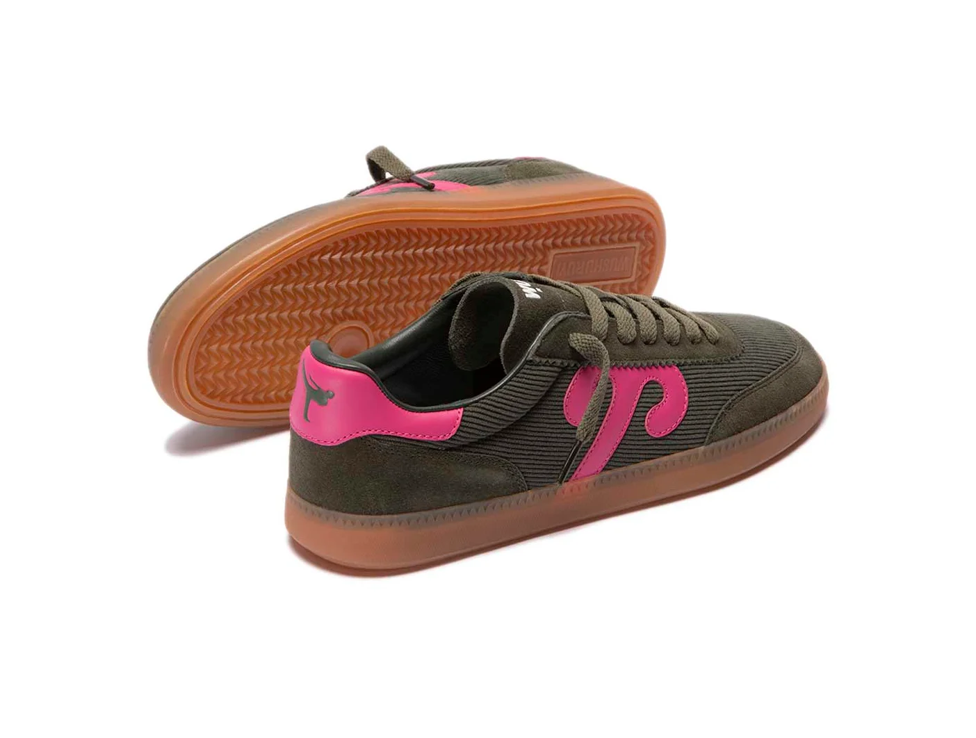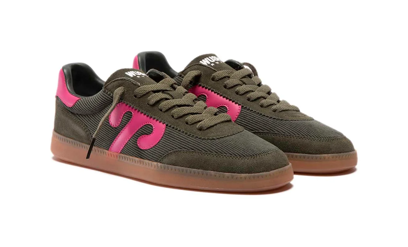 Tomaia in camoscio e nylon con dettagli in pelle.