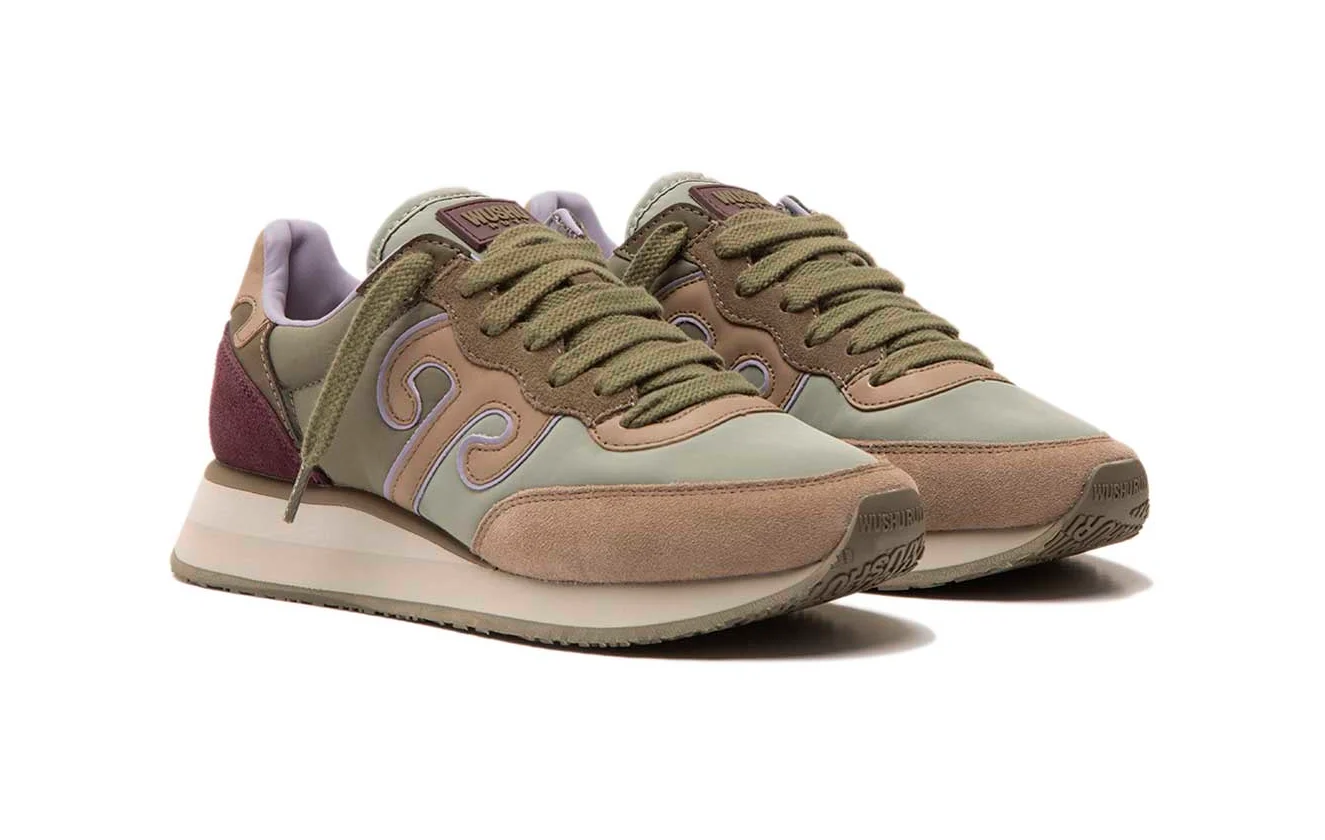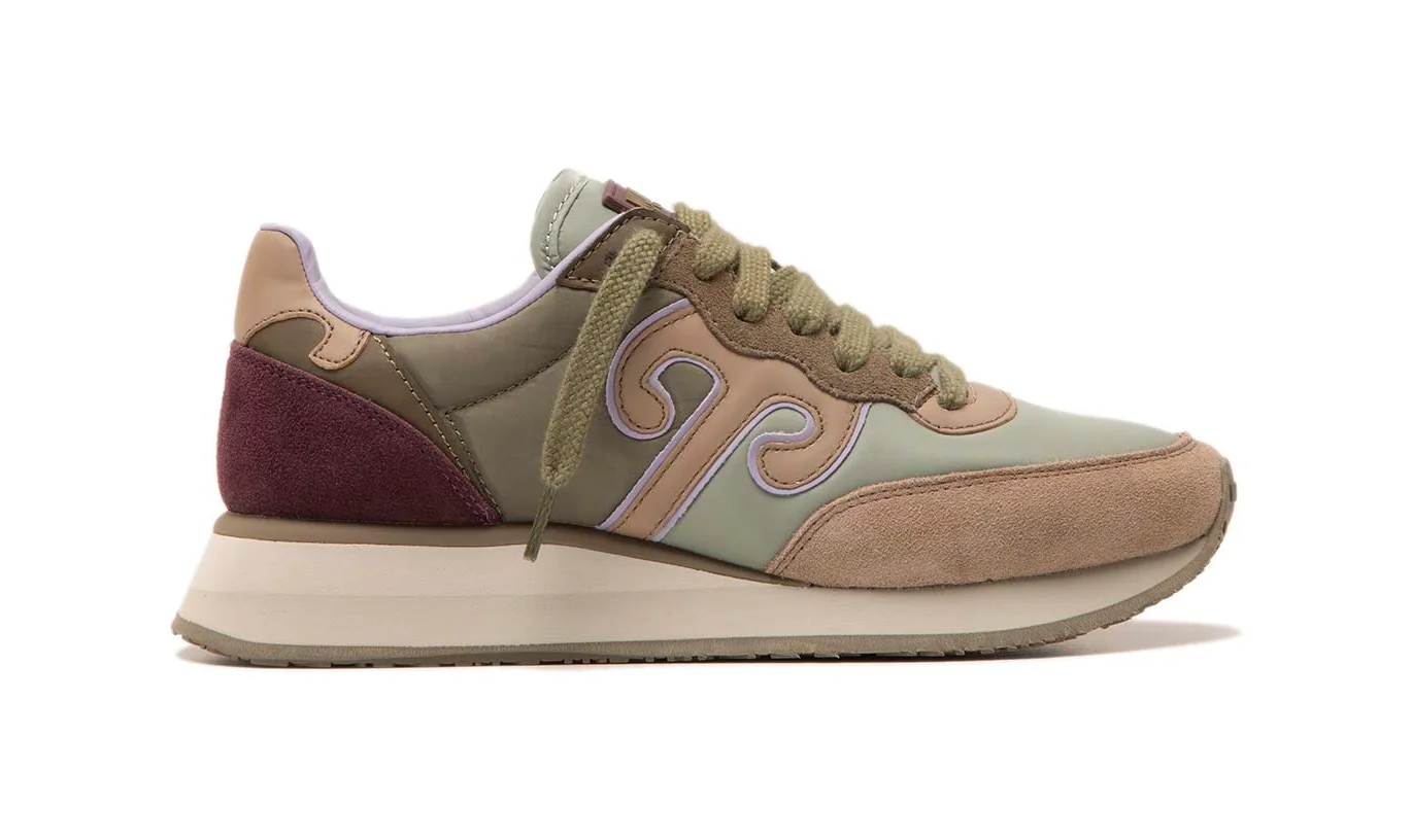 Tomaia in camoscio e rete di nylon con dettagli in PU.