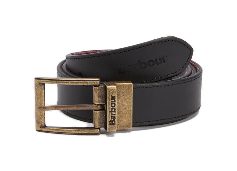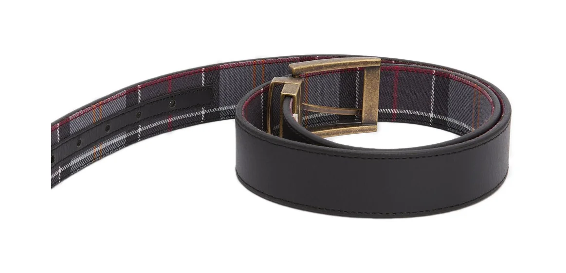 BARBOUR CINTURA REVERSIBILE TARTAN LEATHER BLACK