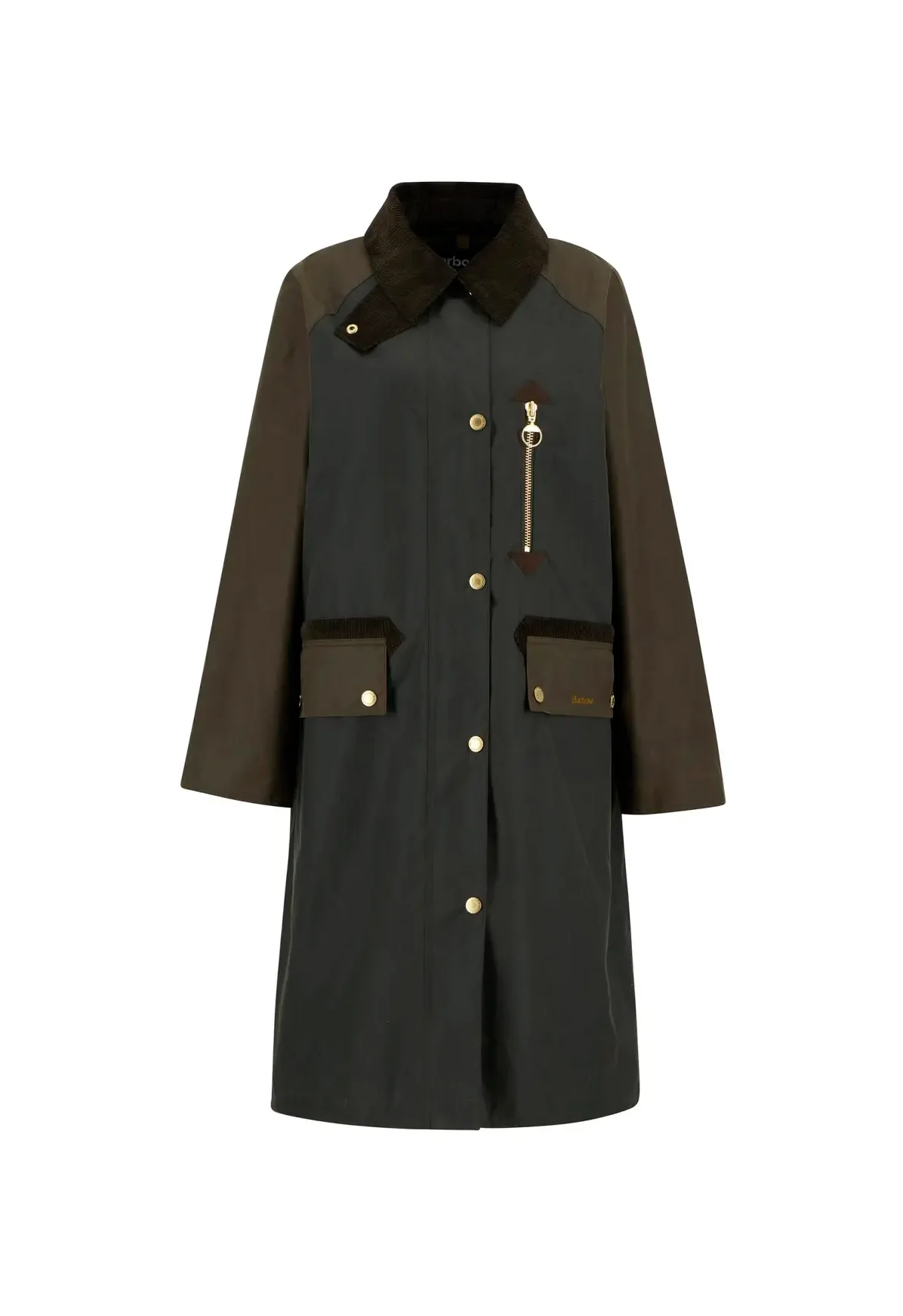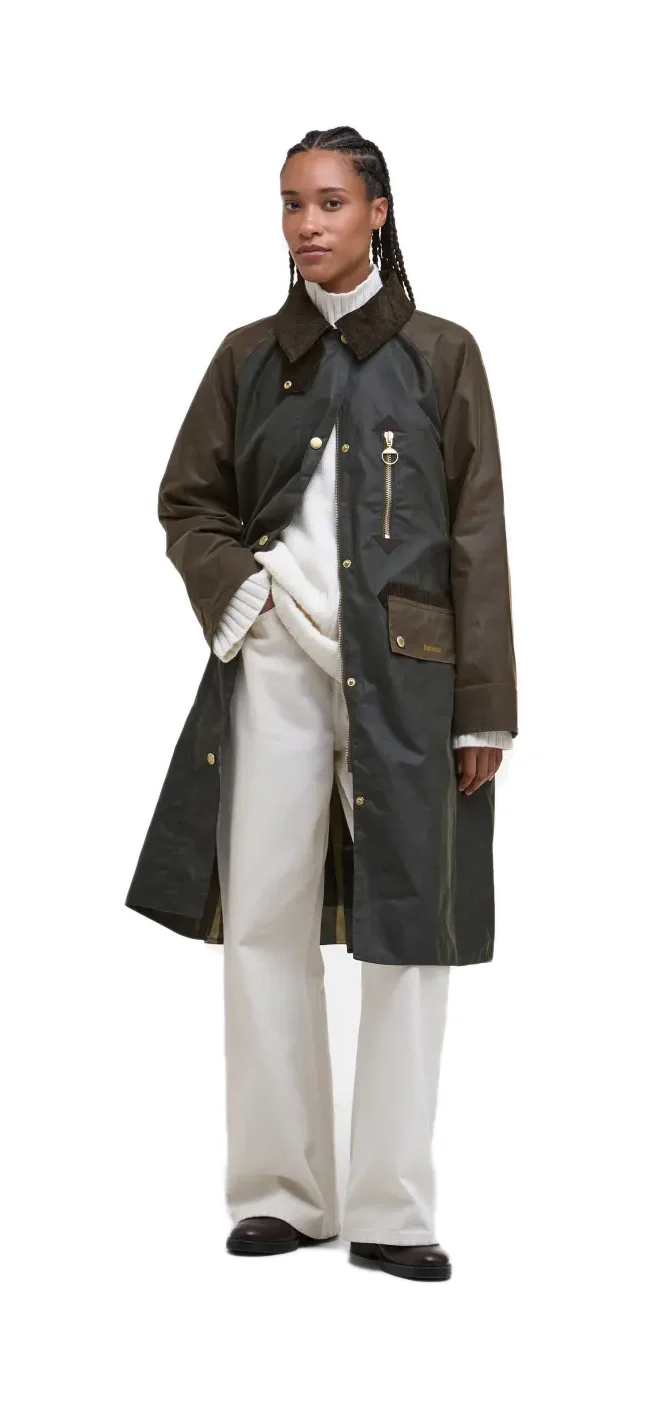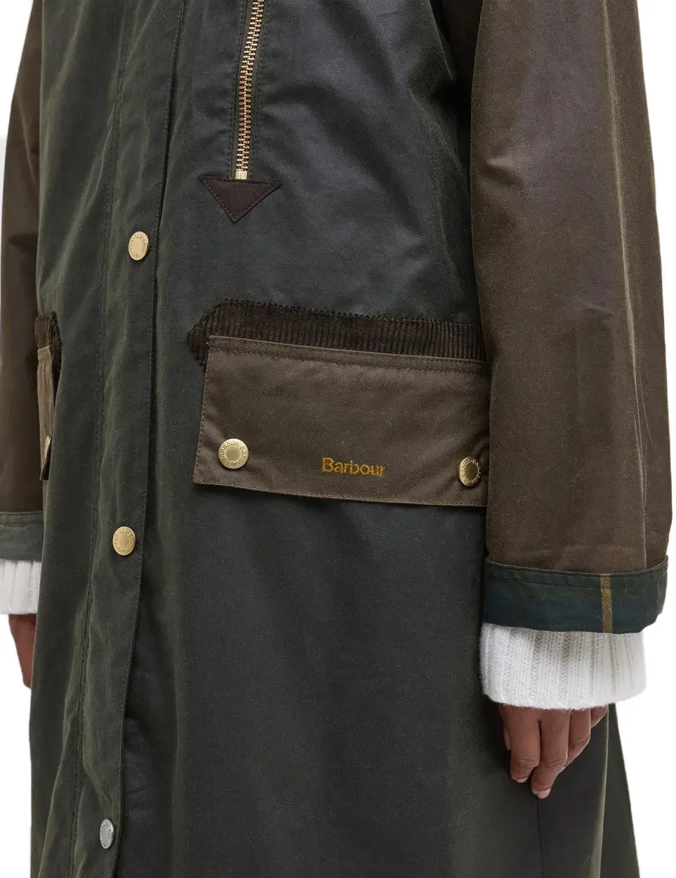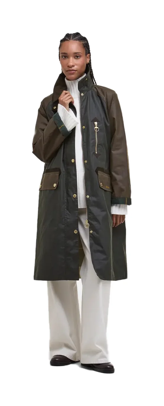 Caratterizzato da un design ispirato ai modelli d’archivio, il giaccone cerato Evette firmato Barbour è il connubio perfetto di tradizione e modernità. Il capospalla è impreziosito da un classico colletto a coste sottili, da una fodera in tartan e da una profonda piega sulla parte posteriore per offrire una vestibilità ampia e confortevole. Sotto la chiusura con bottoni a pressione è presente una zip per offrirti maggiore sicurezza, mentre la una tasca portamappa con zip ti consente di avere sempre a portata di mano gli oggetti essenziali. Sarà il tuo fedele compagno in qualsiasi condizione atmosferica.