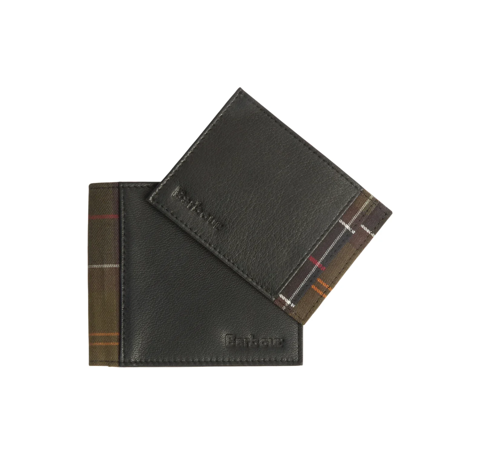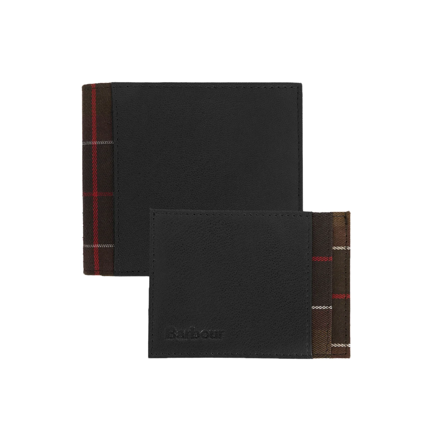 BARBOUR WALLET AND CARD HOLDER GIFT SET BLACK CLASSIC TARTAN