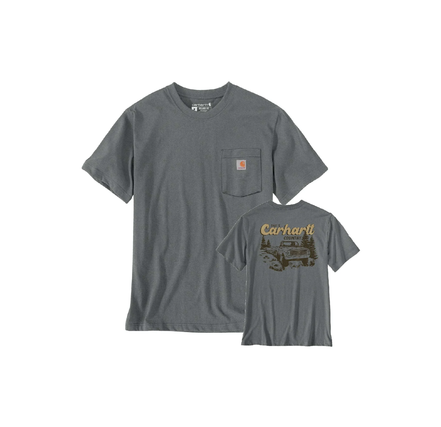 La tasca sul petto a sinistra con etichetta Carhartt cucita richiama l’iconico stile workwear del brand. Sul retro, la grafica Carhartt “Truck” aggiunge personalità e un forte richiamo all’heritage americano, rendendo la t-shirt perfetta per un look casual deciso.