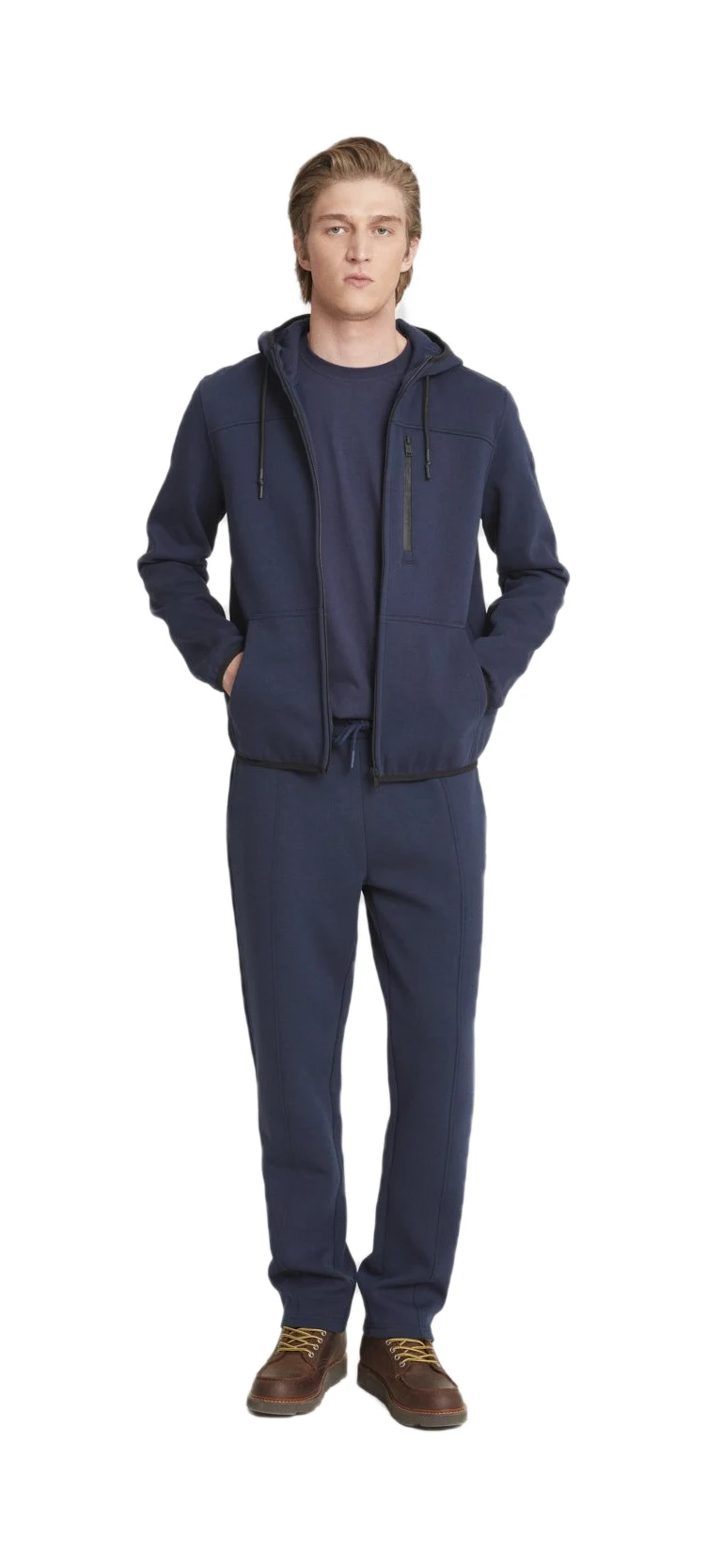 – Elastico in tono su polsi, cappuccio e fondo (nero su variante bianca)