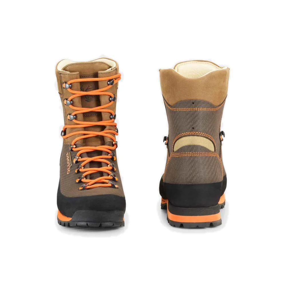Scarponi da caccia e trekking in pelle naturale idrorepellente trattata al poliuretano con una particolare lavorazione che dona alla tomaia un effetto liscio e offre protezione dai graffi di rovi e pietre, inoltre non permette al fango di attecchire, rendendo lo scarpone facile da pulire.