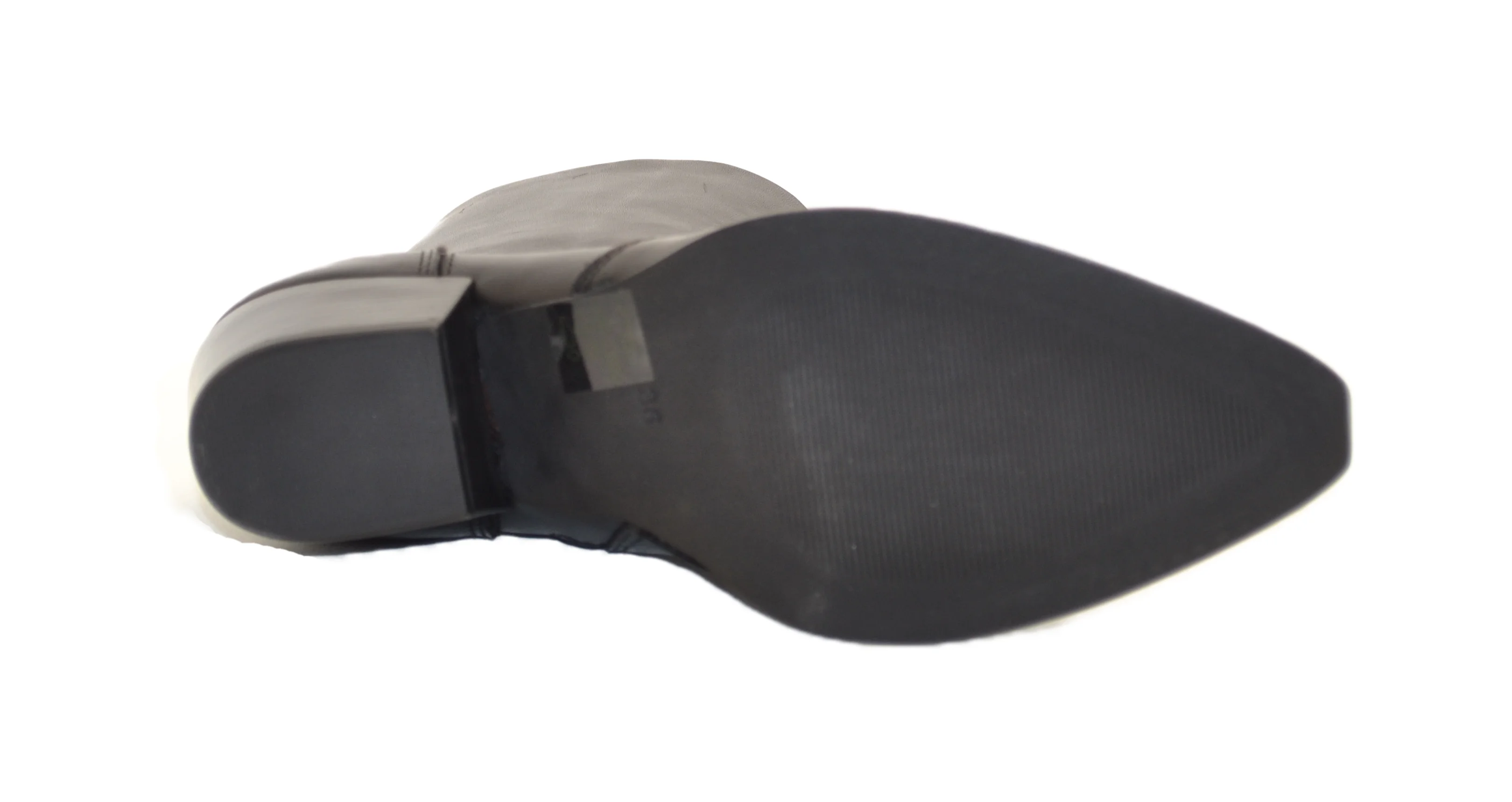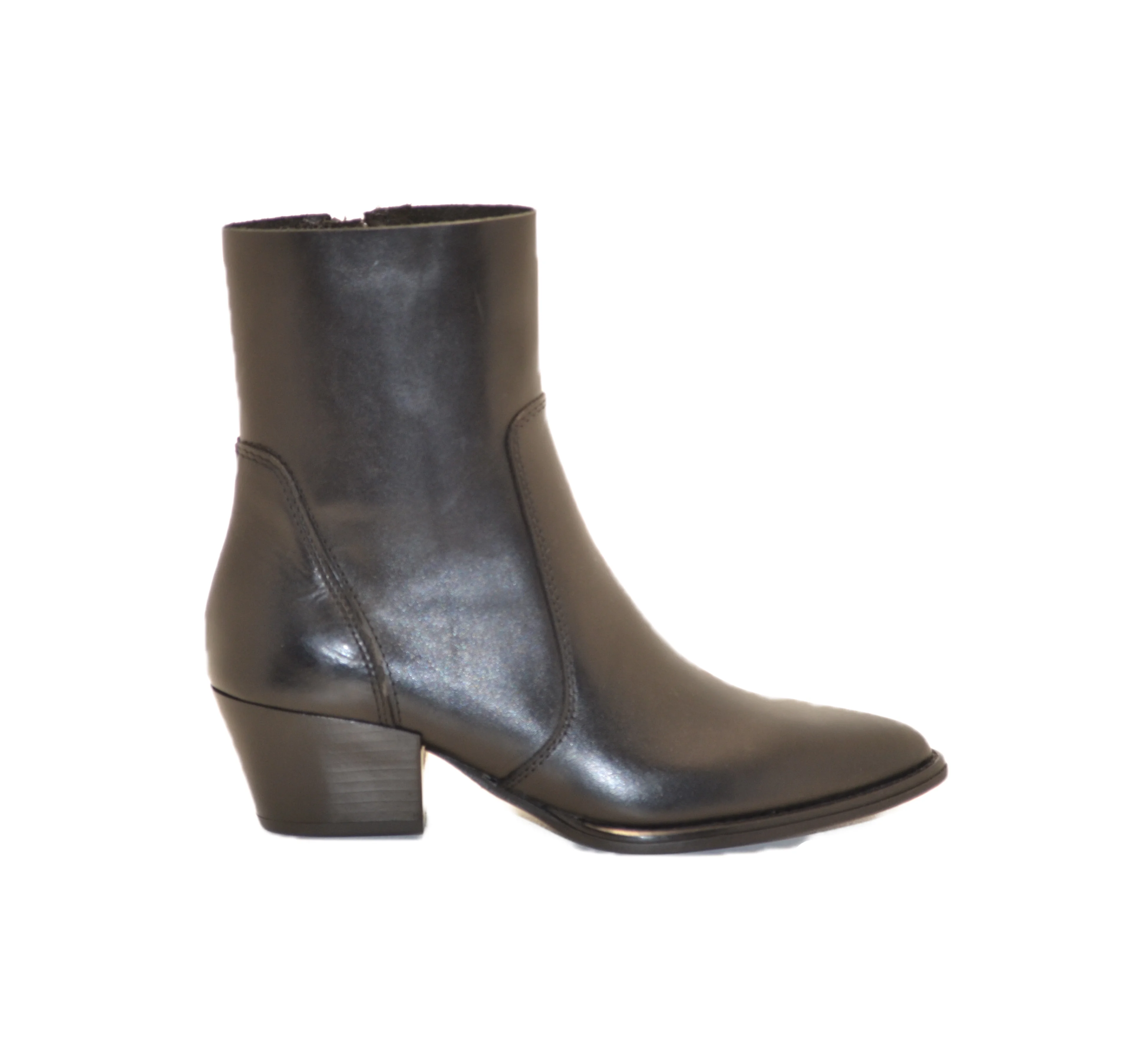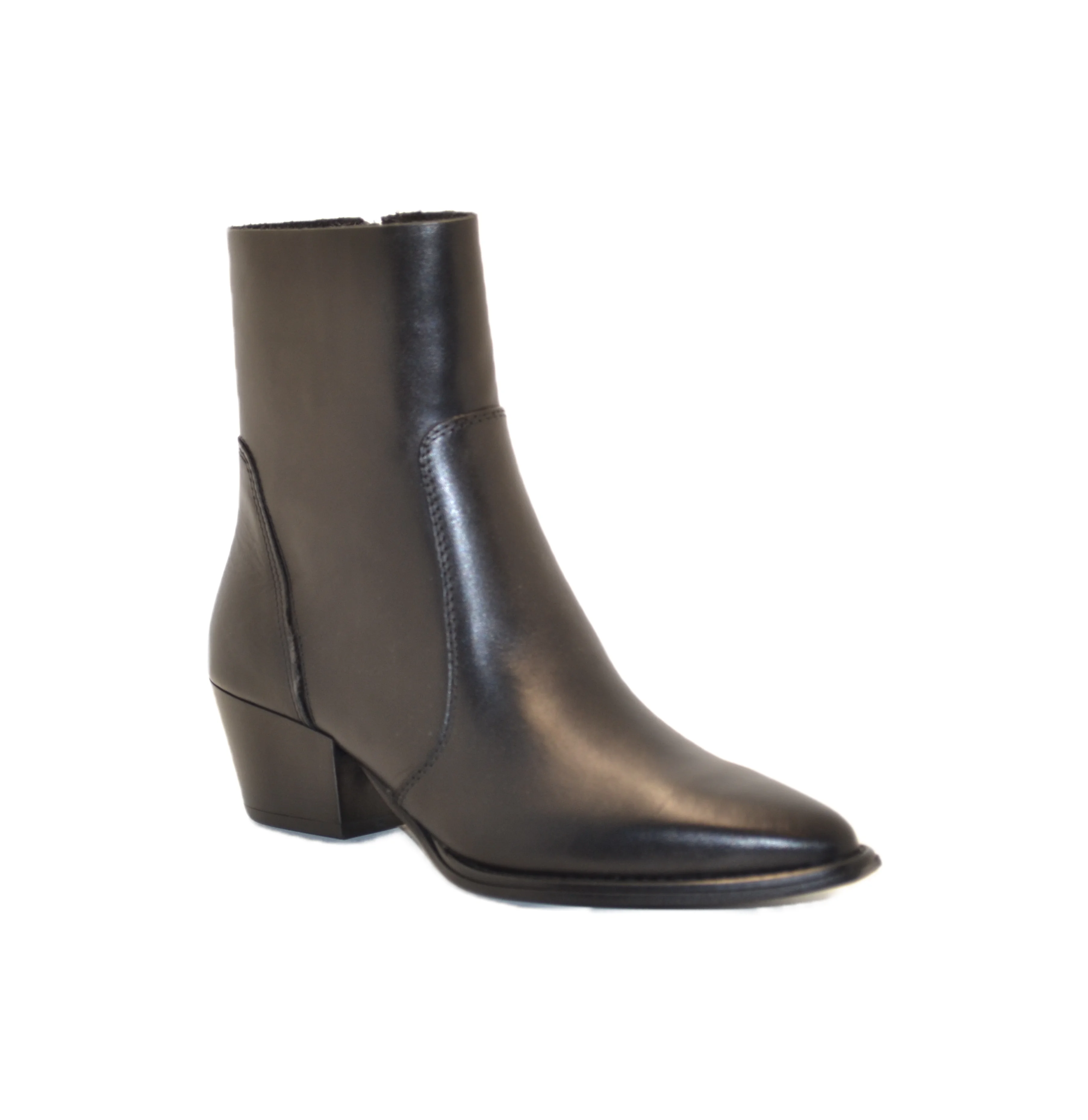 TRONCHETTO A PUNTA CON TACCO E ZIP LATERALE IN PELLE NERO