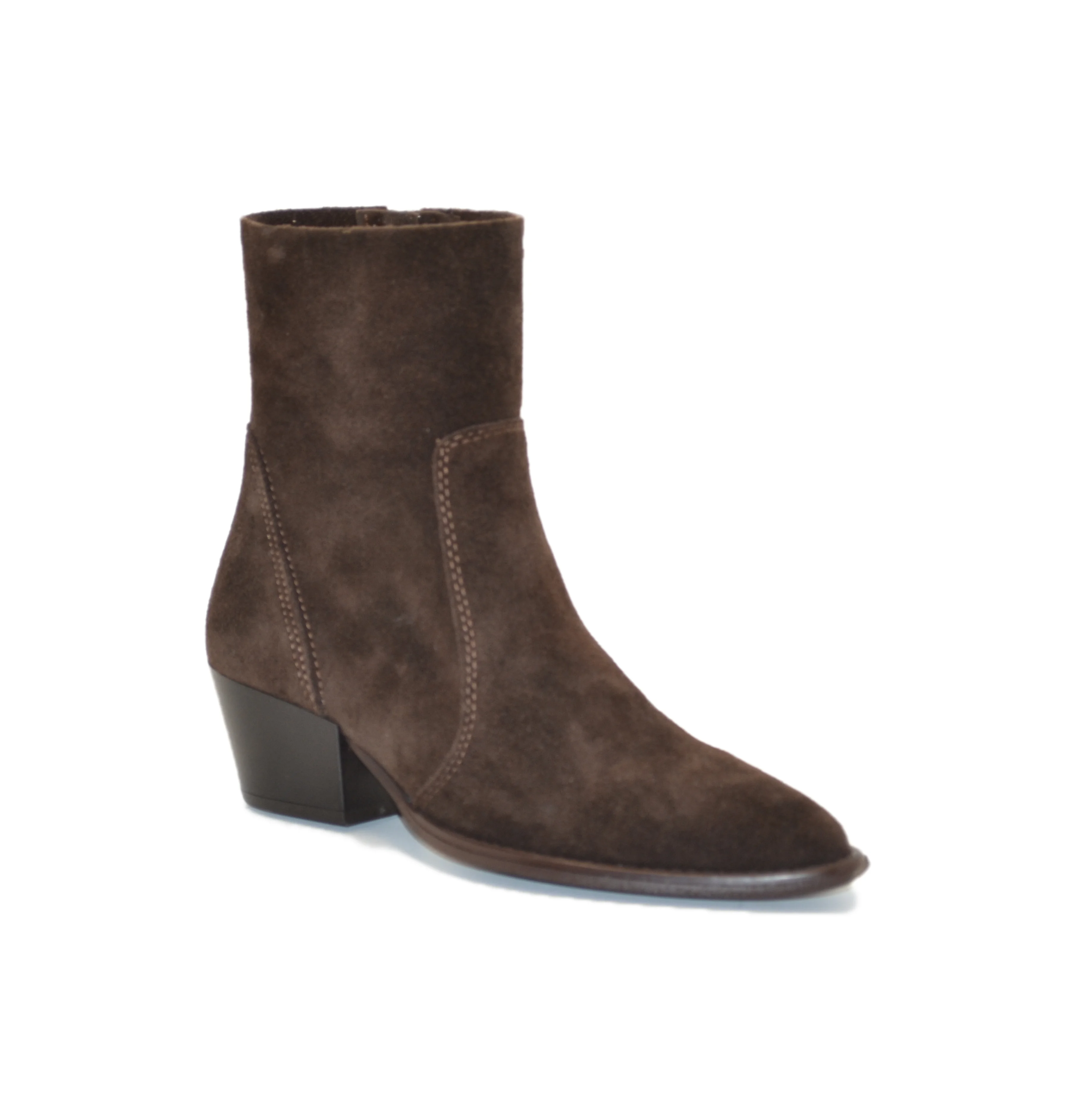 TRONCHETTO A PUNTA CON TACCO E ZIP LATERALE IN PELLE SCAMOSCIATA TESTA DI MORO