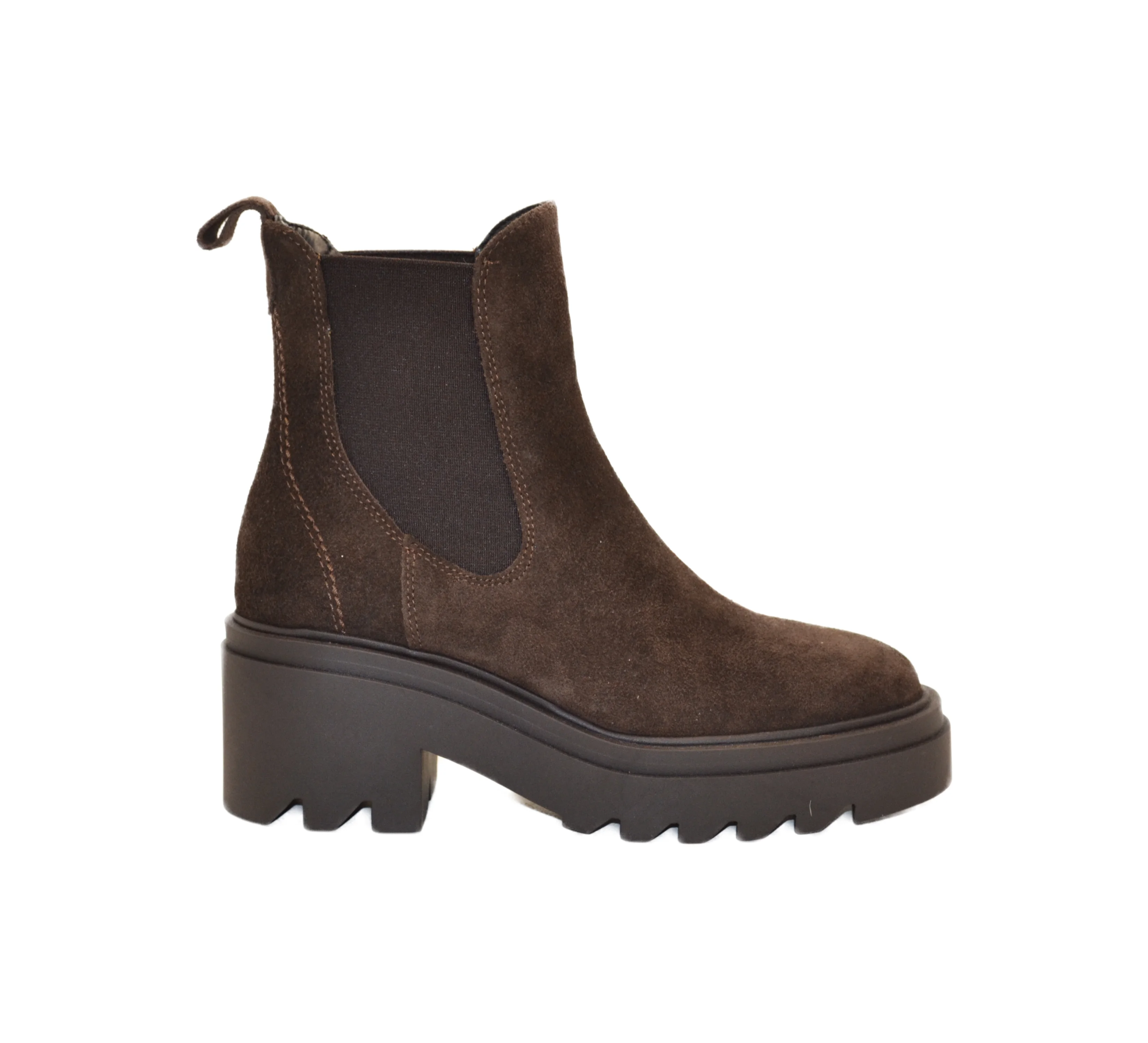 TRONCHETTO CON TACCO IN PELLE SCAMOSCIATA TESTA DI MORO