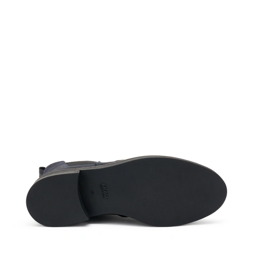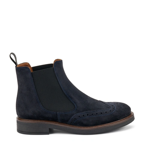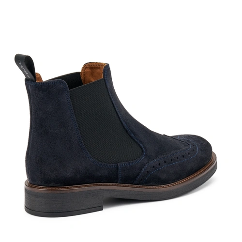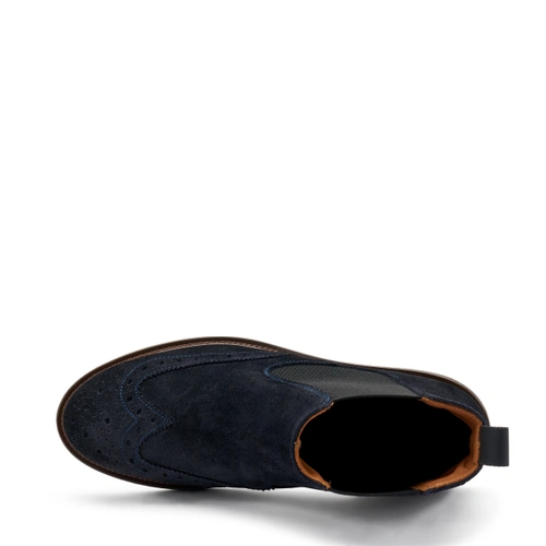 Tradizionale beatles d'ispirazione british, realizzato in pelle scamosciata con finish ombreggiato e rifinito dall'iconico disegno all'inglese a coda di rondine.