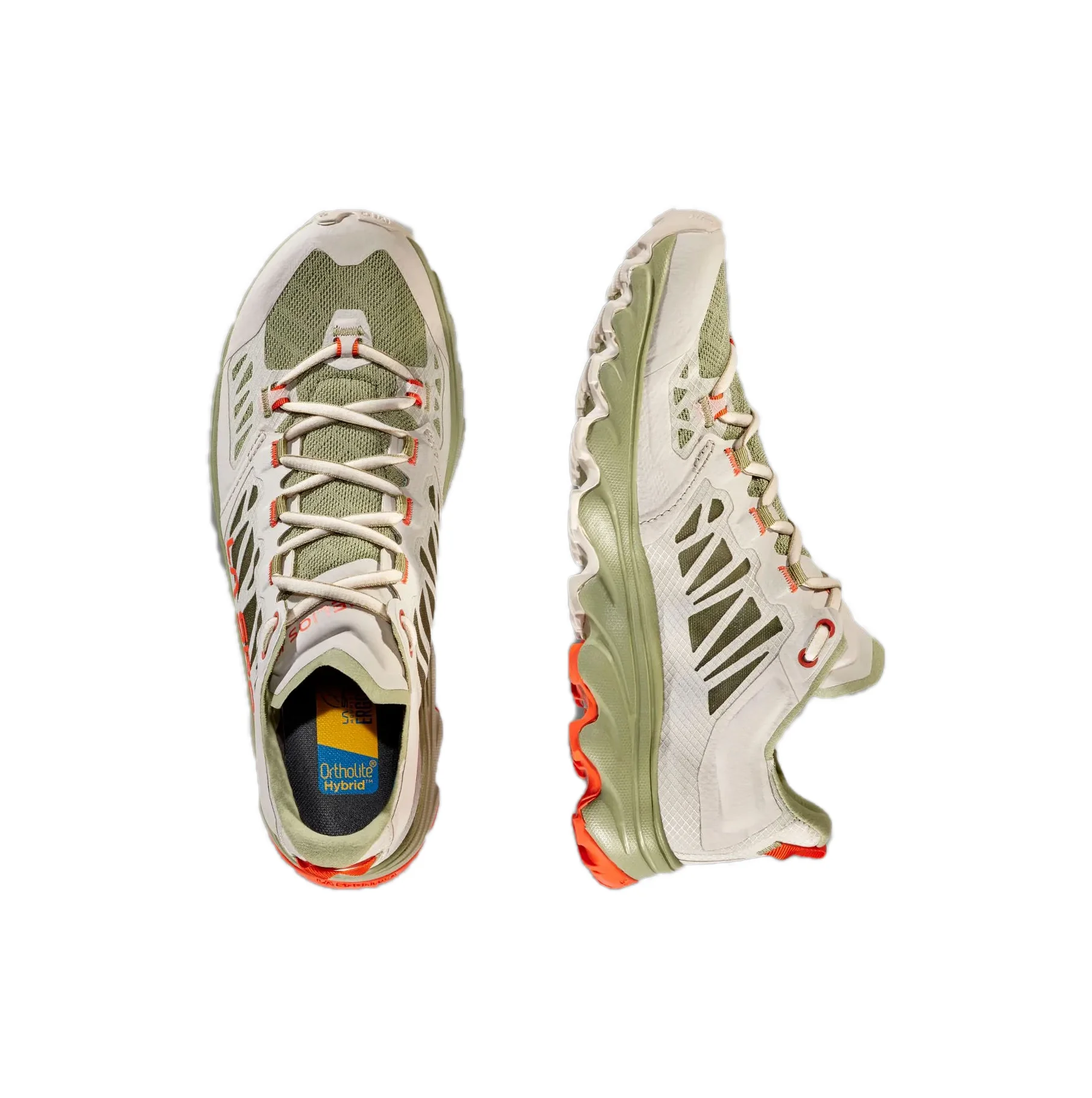 Helios III è la calzatura “door to trail” concepita per allenamenti e corse su terreni duri off-road. E’ un prodotto a vocazione Atlheisure con tomaia leggera e traspirante realizzata con una combinazione unica e termoadevisizzata di tessuto rip-stop, retina monobava, sandwich mesh e rinforzata in TPU. La calzata è estremamente comoda ed avvolgente, derivata dal modello Helios SR. La presenza del contrafforte sul tallone evita schiacciamenti in fase di calzata mentre il collarino avvolgente e morbido con cuscinetti in 3D Foam garantiscono un perfetto comfort di calzata. Il battistrada è in mescola ad alta durabilità FriXion Blu: perfetto per utilizzi su terreni duri e rocciosi. Il puntalino termo-form sagomato contribuisce alla leggerezza generale del prodotto contribuendo anche alla protezione dagli urti frontali. L’intersuola in EVA ad iniezione con tecnologia MorphoDynamic garantisce l’elevata ammortizzazione tipica del modello Helios fin dal suo debutto sul mercato mentre l’inserto Cushoning Platform ne aumenta le proprietà ammortizzanti ed il comfort generale. Helios III: time to fly, again.
