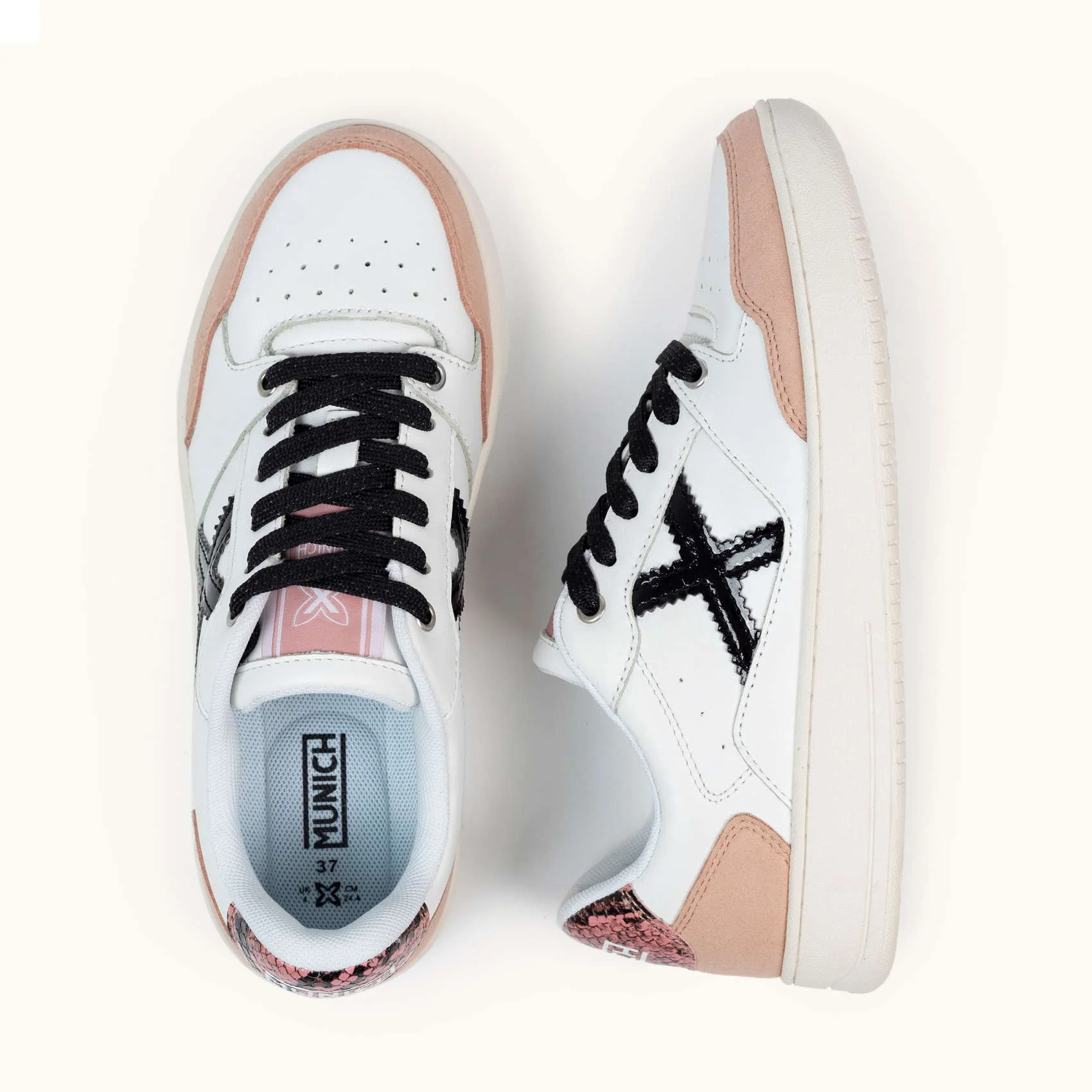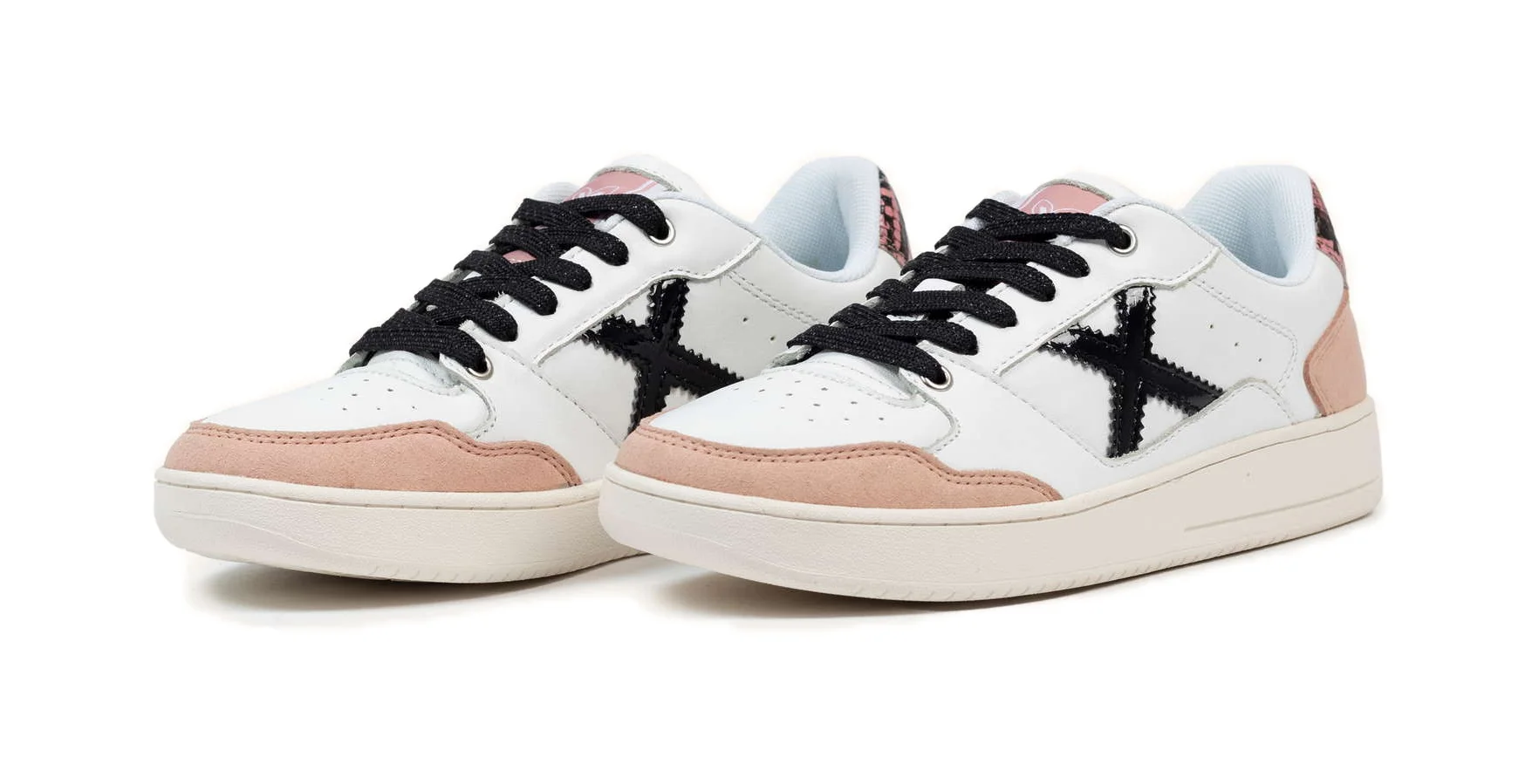 SNEAKERS LEGIT 98 IN PELLE BIANCA CON DETTAGLI ROSA E NERI