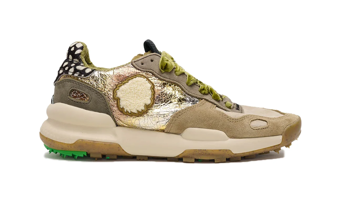 La nostra creazione più consapevole, la Chacrona, si ispira alla foglia della giungla amazzonica utilizzata dalle tribù indigene per connettere mente, corpo e anima. La nostra versione di un cross trainer degli anni '80, è super confortevole e resistente.